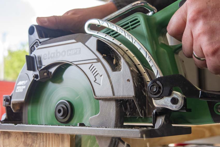 As with most modern circular saws, the Metabo HPT circular saw employs tool-free mechanisms for making blade height and bevel adjustments on the fly. Just flip either movementโ€™s adjustment lever, make the shift, and push the lever back to lock it down.