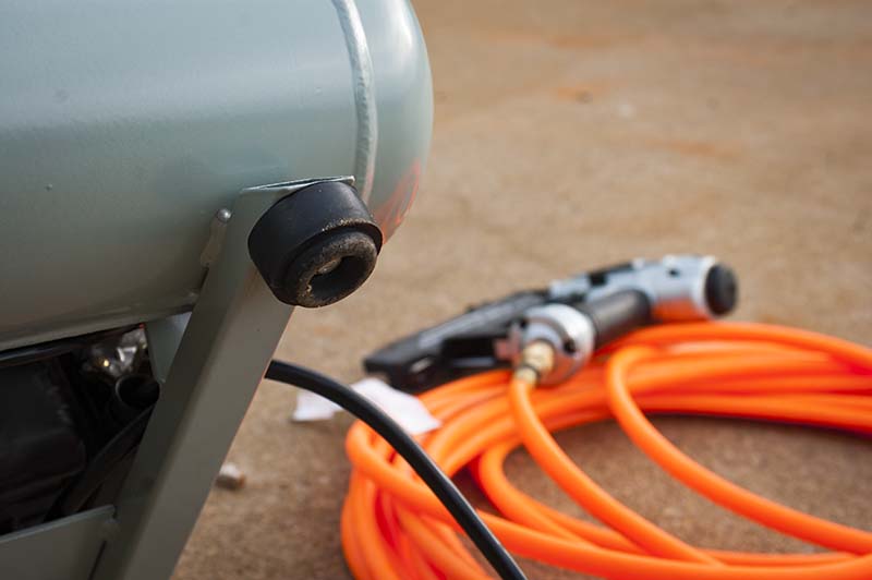 Non-slip, no mar rubber feet are found on the lower frame. Thereโ€™s a standard ball valve drain cock at the base of the tank that makes pressure release simple.