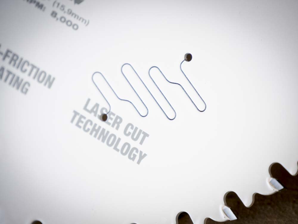 • Laser cut vibration slots: Vibration slots reduce the slight blade wobble that can occur and gives you a cleaner, faster, more accurate cut.