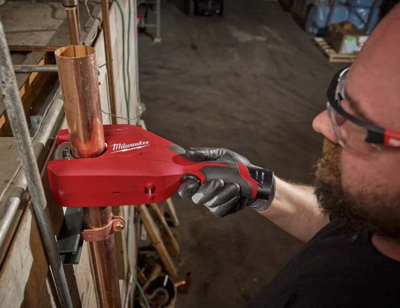 Now, there are several performance and design features that Milwaukee has aimed at boosting productivity. One is a proprietary technology that automatically adjusts the cutting diameter. This includes adjustments for Type K, L, and M pipes within a range of 1-3/8โ to 2-1/8โ.