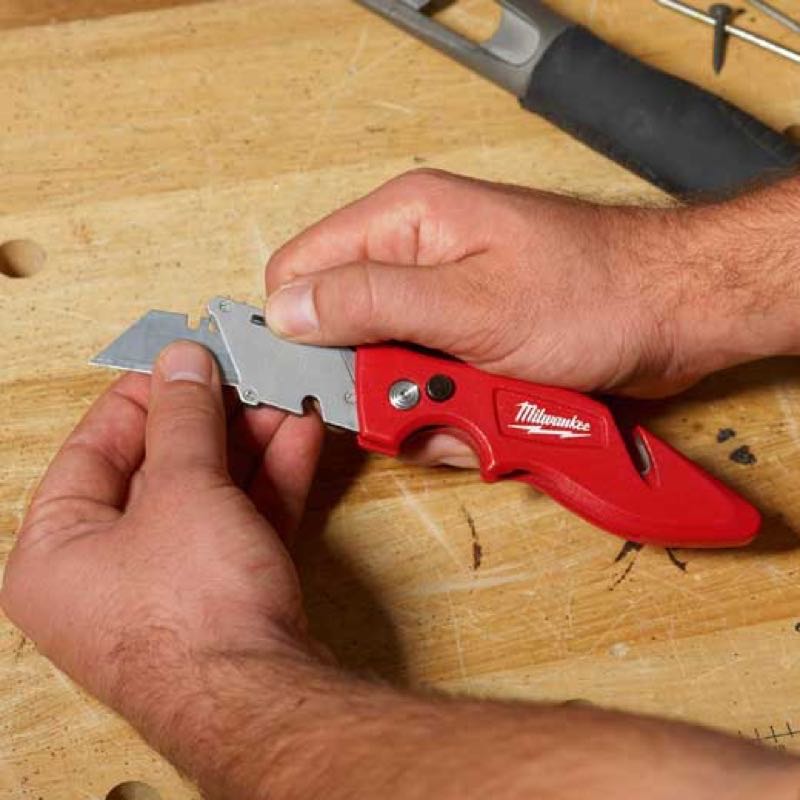 The Milwaukee Fastback Folding Utility Knife comes with 5 blades (one is pre-loaded into the knife). About the only thing we missed on the new Fastback folding knife was an integrated blade storage area. This is a tough thing to add, given the thin profile of the knife, but it would be great to figure out a way to incorporate at least one or two replacement blades. The new utility knife was launched in April and is part of a new roll-out of hand tools and accessories that are proving to be more than just business as usual. The new tool is backed by Milwaukeeโs limited lifetime warranty and is built to have best-in-class durability.