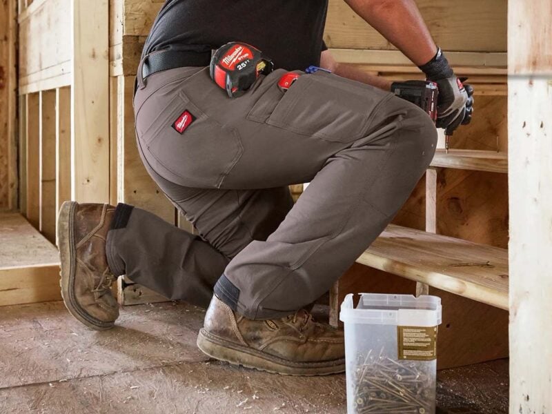 Personally, I like tech utility pants, so Milwaukee is scratching an itch for me with this design. The material blend has the right ratio to be both durable and flexible, and the pocket layout can save me from wearing a tool belt when I’m carrying a lighter load.
