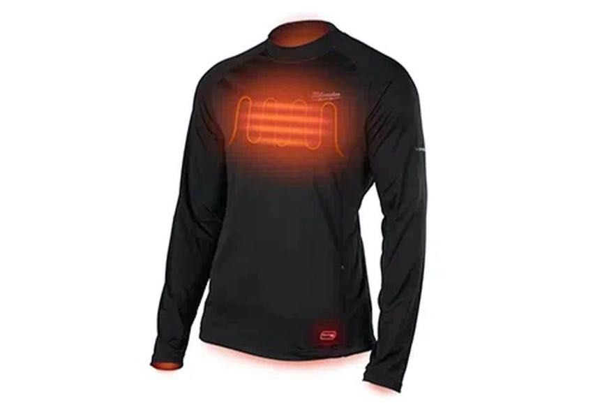 The Milwaukee WorkSkin Heated Base Layer runs for up to 3 hours on a charge. The fabric resists pilling and is safe to run through the washer and dryer.