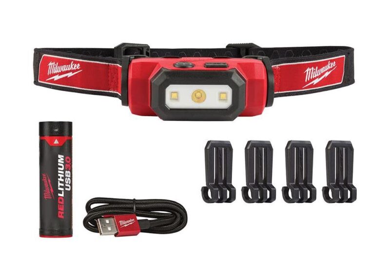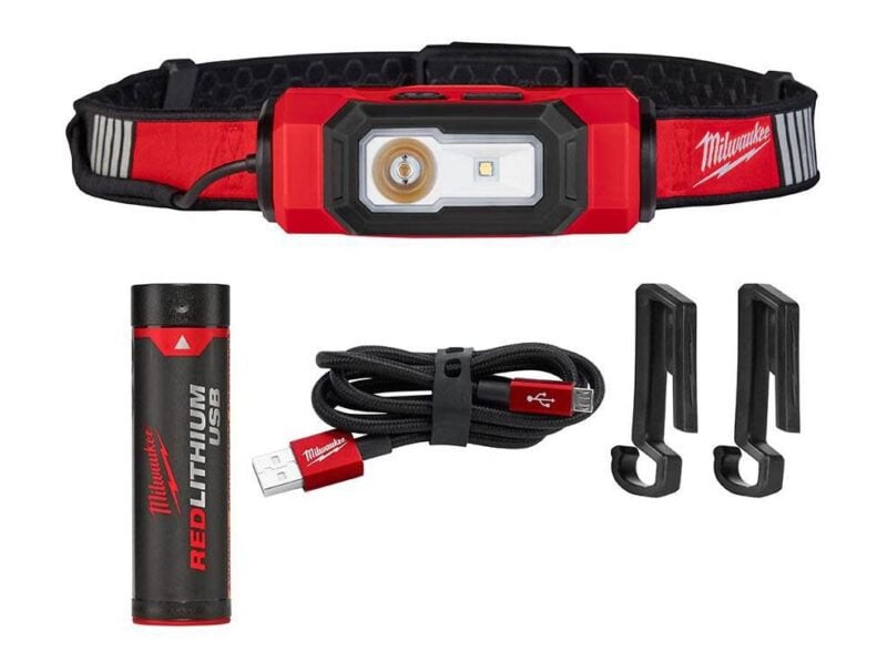 This headlamp isnโ€™t part of the RedLithium USB system, but it is rechargeable with a built-in battery. It puts out up to 450 lumens and is detachable. Behind the light there are magnets, so you can easily attach it to any steel youโ€™re working around to get a better angle on things.