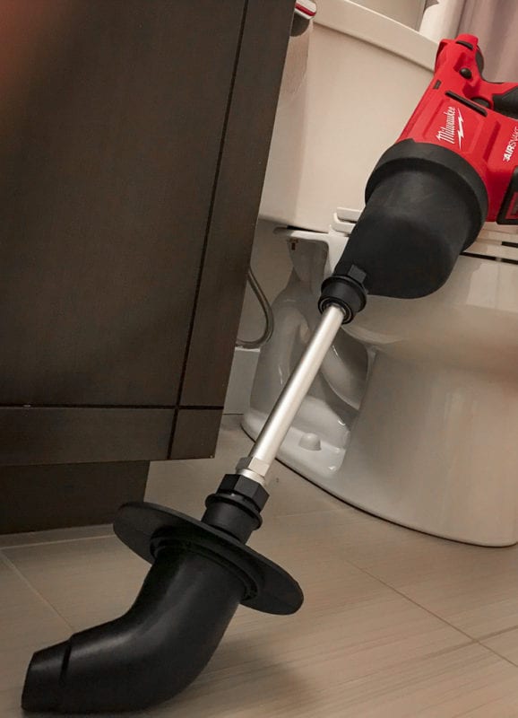 Without having to set up buckets and rags to disassemble traps and having to deal with a messy cleanup, the Milwaukee M12 AirSnake makes clearing certain clogs much easier and faster. Speaking as a plumber, I can say with absolute conviction that any plumber needs to have this tool in their van. Now, that being said, by no means should you throw out your other drain clearing devices.