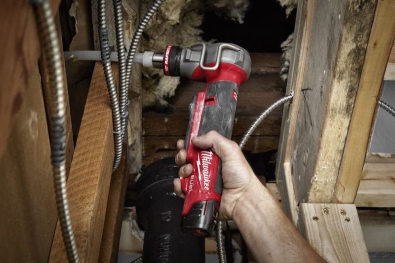 The Milwaukee M12 ProPEX Expander features an extended dual-actuating trigger for better access in hard-to-reach areas. It also comes with an auto-rotating head for quick and uniform expansions. You also get a built-in LED lightโ€”something we almost take for granted now on the newest cordless tools.