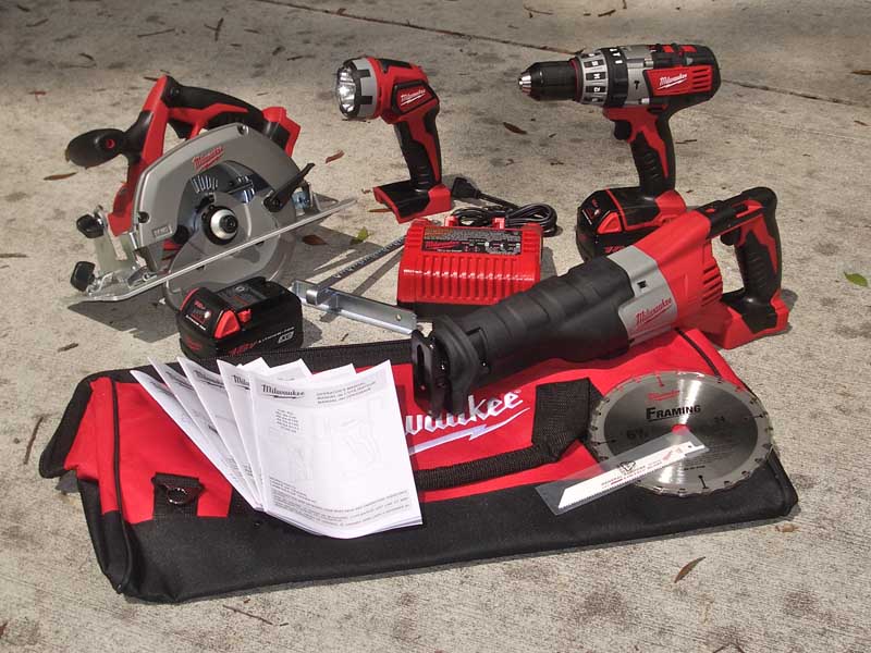 The Milwaukee M18 Combo Kit came to us in a rather large boxโ€”and rightfully so, since it included a hammer drill, cordless circular saw, 18V reciprocating saw, and work light. Thatโ€™s a lot of tools to jam into any container, and we were more than a little anxious to get everything unpacked and get to work. This was the second time we handled several of these tools, thanks to the Milwaukee New Tools Symposium we attended back in June of 2009.