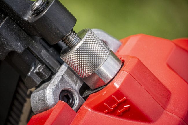 Positioned on top, the metal knurled knob is super-smooth compared to many of the other framing nailers weโve used. It turns easily from one position to the next and works just as well with or without gloves.