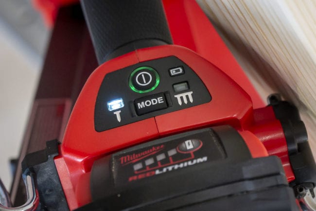 Both the Milwaukee 2744-21 and 2745-21 cordless framing nailers feature an integrated LED light positioned on the bottom which illuminates where youโre hitting. Thatโs not something you get with a pneumatic nailer and we donโt expect it to be a make-or-break feature, but itโs nice to have, especially on remodeling jobs.