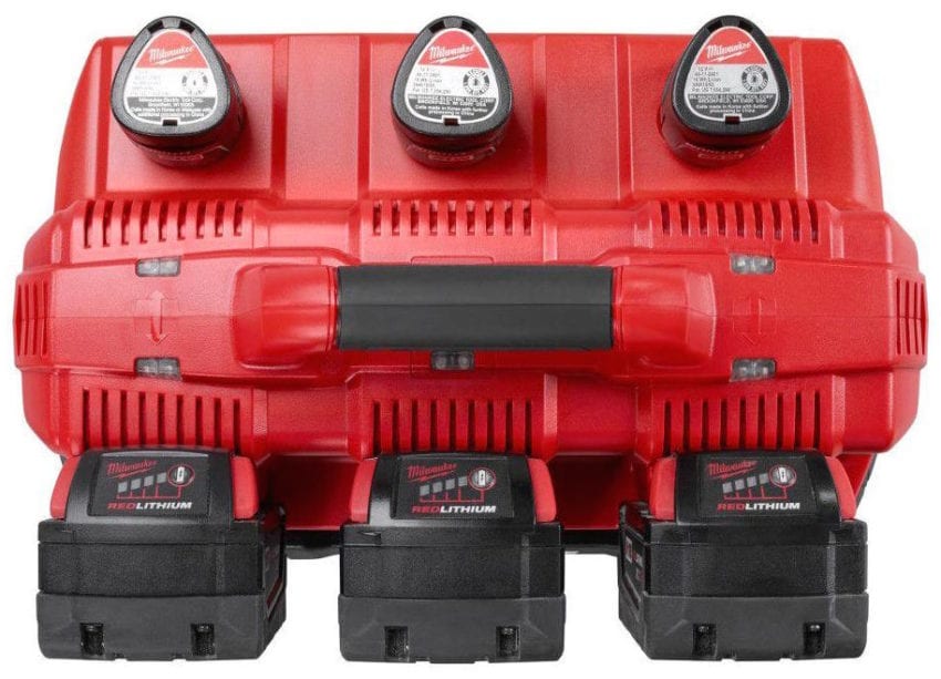 The sheer amount of current required to recharge these batteries makes high demandsย on the electronics and technology requirements of these devices and limits what they can do.ย The Milwaukee Rapid Charger Station 48-59-1807 seems to have scored a massive win by charging threeโyesย threeโbatteries at a time, with three more available in the chute.