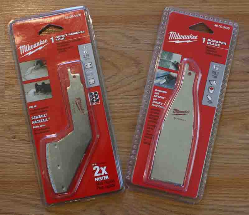 We like the way that Dan Wolfgram, Associate Product Manager for Milwaukee Electric Tool Corporation, sums it up: โThe development of these new accessories really transforms the Sawzall or Hackzall recip saw from primarily a cutting tool into one that can tackle many common material removal applications. Available in both 1-1/2โณ and 3โณ sizes, these new scraper blades offer an excellent solution for removing materials such as linoleum flooring, strong adhesives, paint, glue, thin-set, drywall mud, rust, etc. Likewise, the carbide grit grout removal tool does an excellent job removing grout from 1/8โณ up to 3/4โณ in width.โ