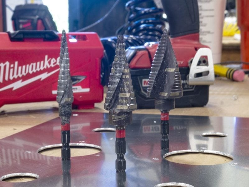 Andโฆย wow, these bits drill quickly. I didnโt take it easy on them, either, using oil only sparingly. I had initial doubts that the Milwaukee step bits could stand up to all the aluminum and stainless, but they did with flying colors. Aluminum couldnโt make the bits break a sweat, although I noticed some smoking in the stainless steel. To be fair, thatโs common with any bit in stainless.