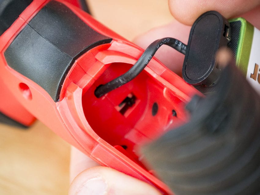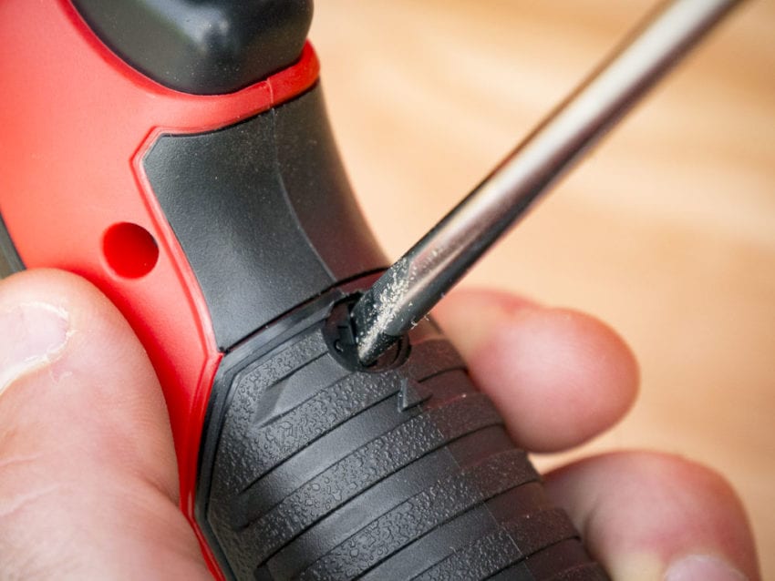 Unlike the M12โs rechargeable lithium-ion battery, this model uses a 9V battery. To access it, youโll need a screwdriver to unlock the compartment. While itโs not always convenient, I like the fact that it locks instead of just sliding off. I have enough things running around with electrical tape holding the battery door in place already.