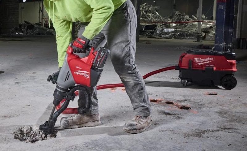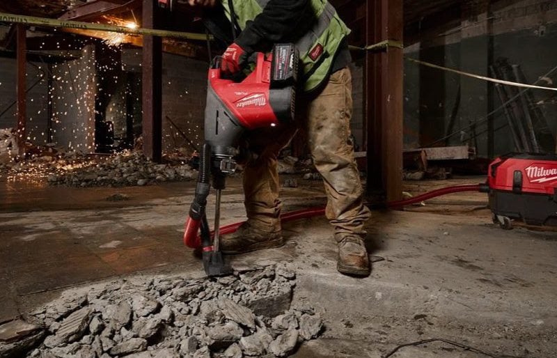 Milwaukee is also bringing more cordless demo power for M18 crews with the M18 Fuel 18-lb SDS Max Demolition Hammer, which delivers up to 11.4 ft-lbs of energy. Like its MX Fuel big brother, itโs equipped with loads of safety and convenience features like AVS anti-vibration system, VacLink dust control, and more. While Milwaukee doesnโt provide any specific runtime specs yet, they do tell us it comes with a Forge HD12.0 battery.