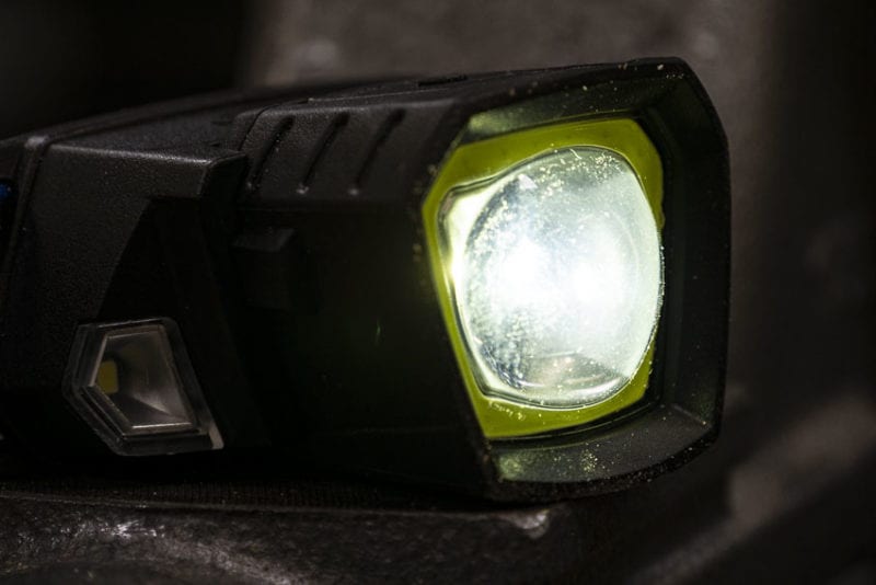 The main headlamp has two settings, a spotlight and a softer area light setting. The actual light quality is adequate, with some yellowing in the halo on the spotlight setting.