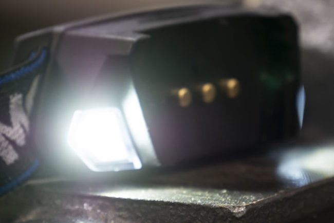 Meanwhile, the base of the headlamp also has separate LEDs that light up when you detach the flashlight. These cast 38 lumens for up to 6 hours with a 14-meter throw.