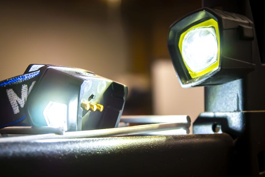 It features a comfort strap that feels soft and secure, and MORF has included some light padding on the base of the light and on the back power supply. The strap fits easily enough over a hat or hard hat (hard hat clips are included).