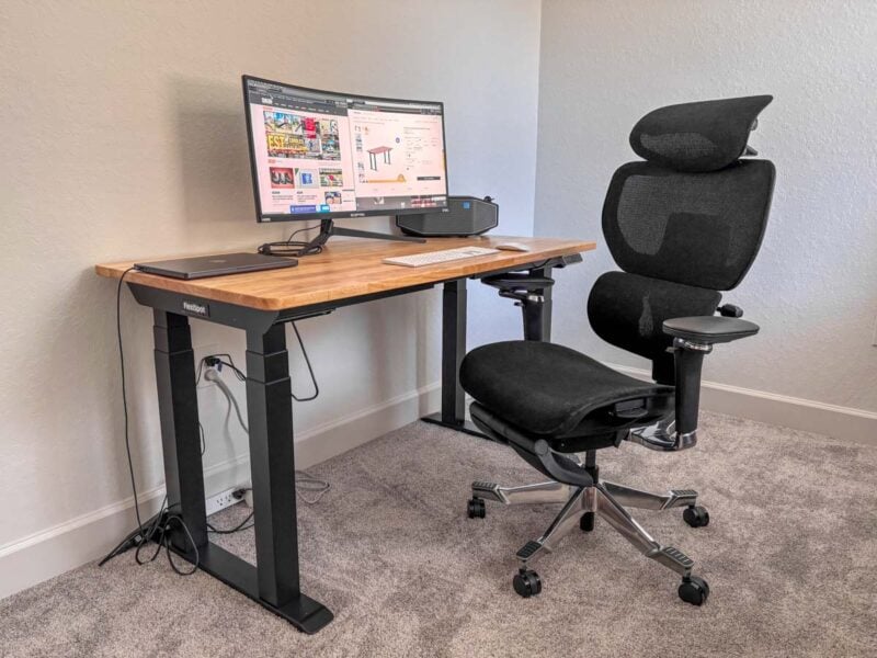We paired this desk with Flexispotโ€™s C7 Morpher ergonomic chair. If youโ€™re having issues finding a comfortable fit on your current office chair, this model has more adjustability than any other chair weโ€™ve used!