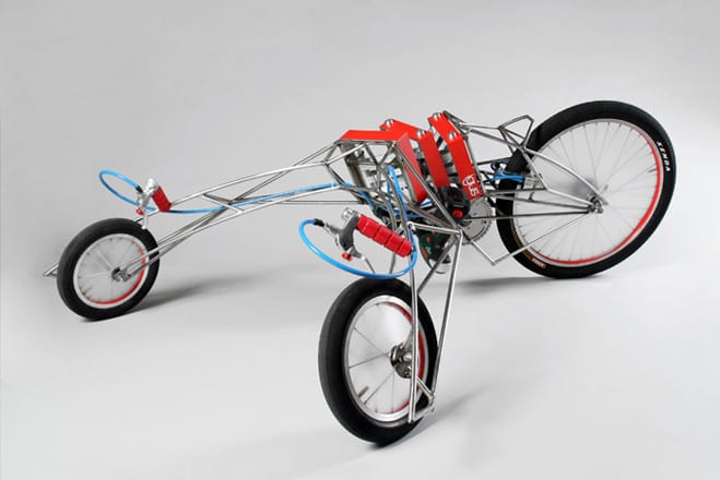 Seriously, itโ€™s cool-looking, but it makes the average crotch-rocket look like a well-padded cruiser. I mean, itโ€™s different โ€“ but would anyone actually want to drive it for more than 10 minutes at a shot (or even last that long?) Maybe thatโ€™s not the point (thatโ€™s code for โ€œYes, Iโ€™d take one if you gave it to me!โ€) Brilliant and simpleโ€ฆ just put a seat on it for goodness sake!