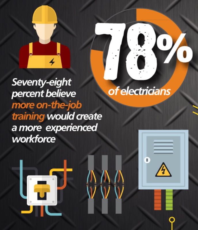 While the survey addressed future concerns, the current concerns of electricians leaving the industry was clear as well. The 2016 Klein Tools State of the Industry survey found that 70% of electricians thinkย there is a current shortage of experienced electricians in the field. To remedy this, a large percentage also felt that on-the-job training was the answer.