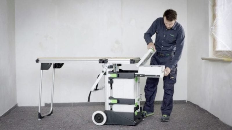 The Festool Mobile Workshop is ideal for a mobile Pro since it lets you carry everything you need in one setup. Of course, items like your Kapex miter saw and CT dust extractor are still going to have to roll in separately, but itโs a nice system to keep your smaller gear organized and easy to transport.