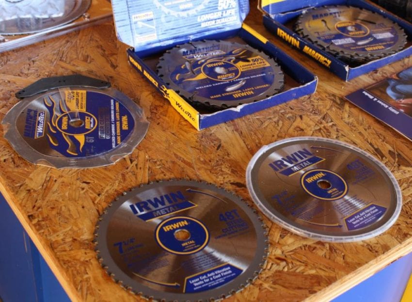 We experienced this first hand when ripping in a ridge vent into the roof of a 1920’s home recently. For the rest of the crew, however, it was demonstrated with a pile of 16D nails pounded in the side of a 2×4. We watched as the Irwin crew proceeded to make longitudinal cuts through both the wood and the nails with no problems. At the end of the cut, the blade was no worse for wear. In addition to the WeldTec wood blade, Irwin had a new line of blades designed for cutting metal and fiber cement type products.