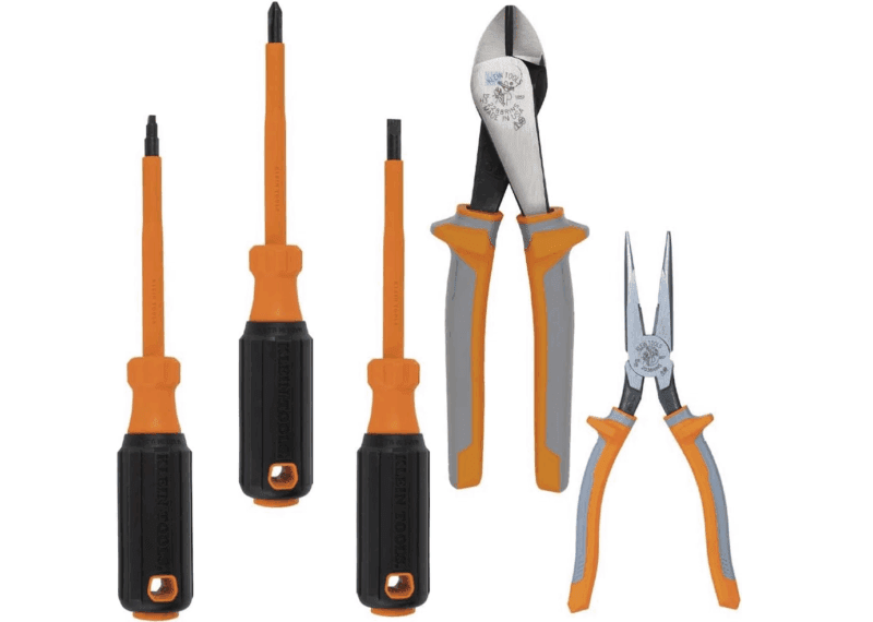 Just like the rest of Klein’s legendary hand tools, the process begins with its proprietary steel blend and goes through three stages of heat treatment to condition that steel. Once assembled and polished, the tools are ready for the injection-molded handles. The grips of pliers and cutters in this Klein insulated tool set are made with dual-layer insulation, consisting of a white inner layer and an orange/gray outer layer. The inner white layer acts as a compromise indicator if the handle is cut and as an additional layer of protection.