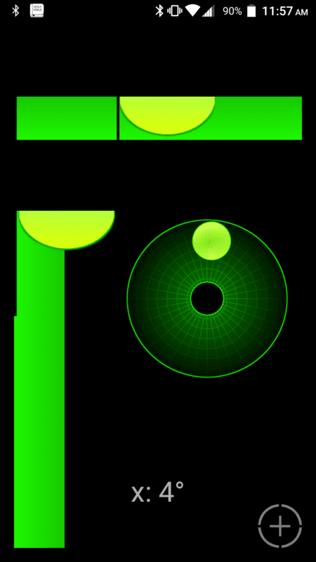 Anyway, all I have to do on Bubble Level Galaxy is press a button on the bottom right corner and hold it to reset the calibration. But that changes the way my phone is sitting on the table and now the calibration is off. So I start over and try to press more gently this timeโฆ
