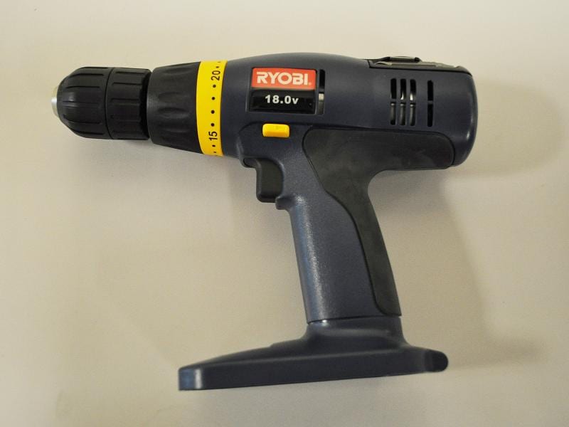Description:ย The Ryobi Model HP 1802M cordless drill is powered by an 18 volt rechargeable NiCad battery. The drills are blue and black in color with โRyobiโ appearing in red and white on the left side. The model number can be found on a white label on the right side of the drill.