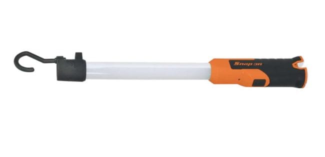 This new utility light cordlessly cranks out 540 lumens with 60 LED bulbs. Snap-On uses high-impact plastic for the housing and a padded hook for hanging.