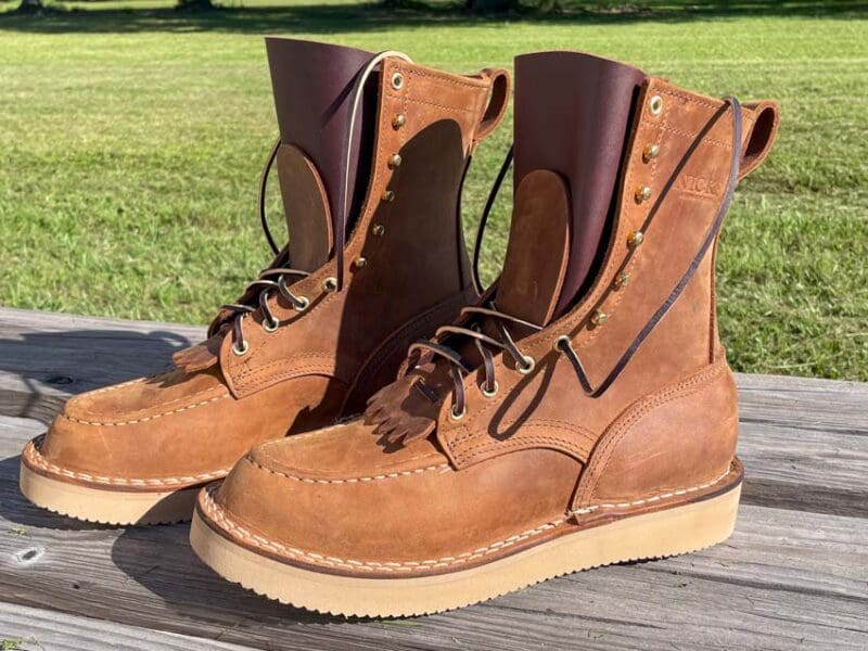 The style of the boot varies with your choices, but in general, the standard configuration has the look of a classic logger without as pronounced of a heel. By shifting it to a wedge sole and moc toe, Issacโ€™s version takes on a more stylish look that works with his personal tastes on and off the job.