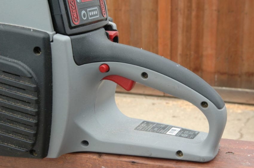 It’s good to see some steel bucking spikes! Most of the saws in this shootout have insubstantial, plastic bucking spikes that really don’t help with vertical cuts at all. Although the Oregon’s steel spikes aren’t nearly as substantial as those found on most gas-powered chainsaws, it’s better than flimsy nubs by a long shot.