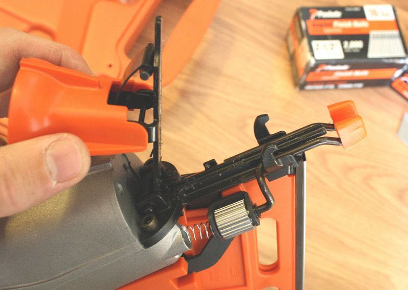 Some of the niceties of the Paslode T250A-F16 include the rotating exhaust outlet on the back of the body; it is nice to be able to adjust the air flow so that it is not blowing you in the face every time you take a shot โ plus, you can turn it in the event you switch hands. When there are no more nails left in the magazine, there is a nail lockout feature that will not allow the nailer to fire. This means no more blank fires and no more surface damage to that expensive woodwork.