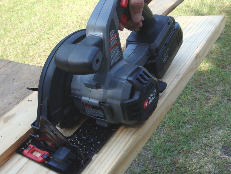 The PC186CS cordless circular saw is equipped with a 6-1/2โ€ณ carbide-tipped blade, which makes it possible to cut through thicker materials. As we continued our projects, however, we did begin to experience the limits of the batteries. Having the second battery close by and with Porter Cableโ€™s rapid charger handy, it never really seemed to slow us down. The sight lines are also pretty good on the saw, with good visibility of the blade and the cutting guide.