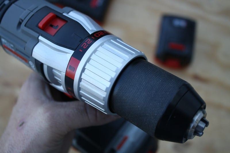 Theย two-speed switch that is located on the top of the tool is easy toย adjust with bare or gloved hands. The 2-speed gearbox on the Porter-Cable PCL180CDK-2 does 0-350 RPM and 0-1500 RPM, so itโs great for both high-speed drilling and applications that require high torque. Speaking ofย torque, this drill puts out 424 in/lbs, which is pretty decent for aย compact drill. The forward and reverse switch was located perfectlyย for activation by your thumb and first finger.