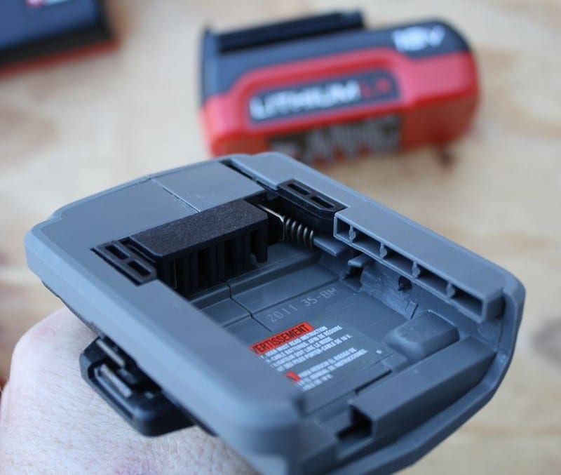 Weย loved the battery eject mechanism on this tool. When you push theย button, the tool literally throws the battery at you โ which isย incredibly helpful when you want to swap them out quickly and easily.ย As we mentioned above, it was also a vast improvement to know that weย didnโt have to contort our arms to replace the battery while holdingย it by the handle, since the front-loading slot was within easy reach.ย Finally, the included 30-minute charger supports both Lithium-ion and NiCD chemistry sled batteries, so you can use it for all your modern Porter-Cable tools.