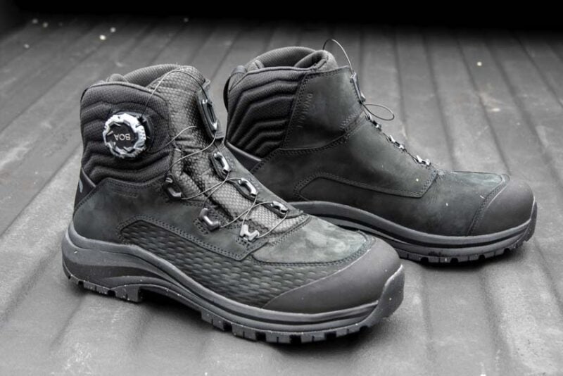 I have to pass a checkpoint that requires the removal of my shoes. While other teammates have to lace/unlace their boots, I can very quickly get out of and back into my boots thanks to the BOA system. The system is easy to manipulate but I did have the BOA dial hang up on releasing the cablesย on one boot occasionally. If that happens, you just needย a little extra tug to get it to release. Most of the time, though, it was quick and easy to remove and put the boots back on and cinch up the cable. I also like that the cable system made the entire boot feel evenly snug with no pressure points or loose areas.ย