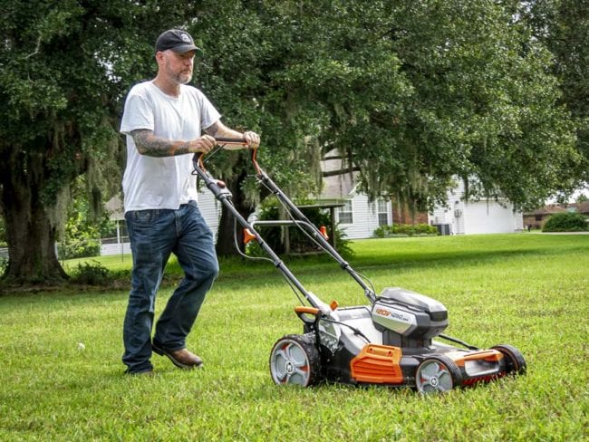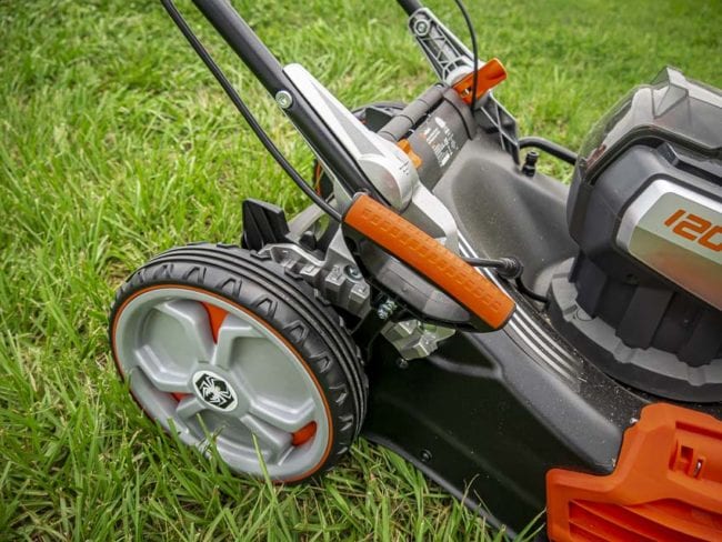 The Redback 120V Self-Propelled Lawn Mower dominates in the power category. Thereโ€™s a trade-off for that, and weโ€™ll talk about it shortly. For the time being, know that the Redback 120V doesnโ€™t mind being thrown into the taller grass.