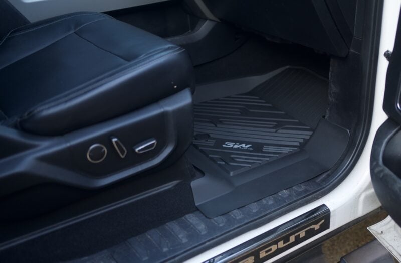 3W’s hard-shell floor mats stuck out to me. They’re much more durable than the rough carpet material that comes standard in most mid-range cars and trucks. Plus, the rubberized fabric-free design makes them weatherproof and easy to clean with soap and water.