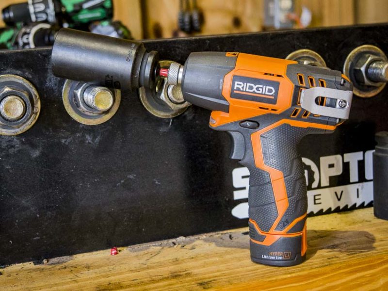 The Ridgid 12V impact driver gains some ground in breakaway torque. It finished our nut-busting torque tests in a 3-way tie for 5th place, breaking 600 in-lbs of torque.