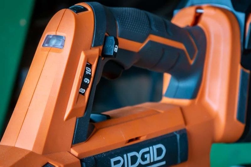 Ridgid brings over the basic handle design of their pistol-grip drills and drivers. Itโs a comfortable fit and the angle of it is more comfortable than some of the other designs weโve used.