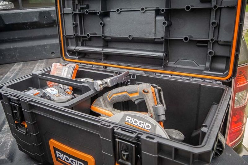 Ridgid has a weather-resistant gasket surrounding the underside of the lid. When closed, the box protects your tools against water and dust ingress.