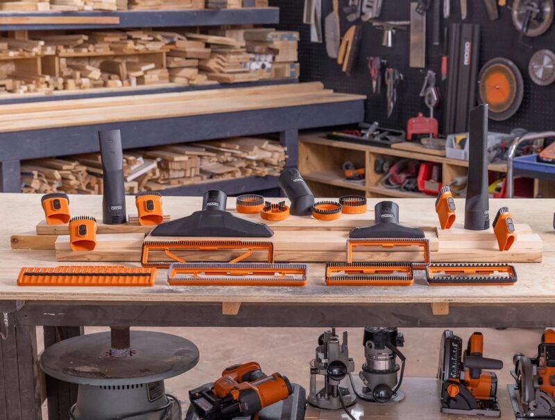 Some Ridgid vacuums come with a selection of NXT accessories, but additional shoes and tools are sold separately, letting you build the exact configuration you need.