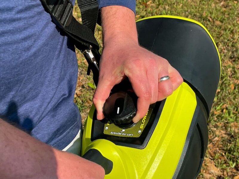 Rather than a trigger, it features a variable speed dial that functions just like a cruise control lever like you see on most battery-powered blowers. This lets you control the airflow and maintain that sweet spot while gathering leaves and other yard debris.