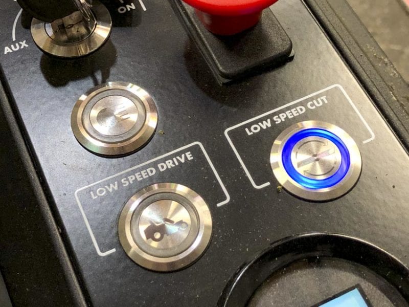 Both the drive and blades have high and low speeds to choose from with the simple press of a button. The mowerโs top speed is 7 MPH and all of us on the testing team run it at high speed using the lap bars to manage it. Dropping to low speed is helpful if youโre getting used to the controls, but we think most folks will default to high once theyโre comfortable.