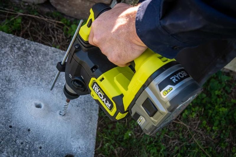 However, the Ryobi HP design also mitigates much more of the felt vibration. Ryobi uses an anti-vibration handle that they say provides up to 47% less vibration than the last model. This, they claim, will lead to an increase in jobsite efficiency and a reduction in user fatigue over extended periods of drilling and chiseling.