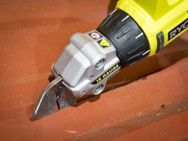 This new shear is compatible with the whole line of Ryobi 18V One+ batteries. When coupled with a 18V One+ 4Ah battery, Ryobi tells us it can cut through 1000โฒ of sheet metal on a charge. We havenโt come across a need toย do that much cutting in one sitting, so weโll take their word for it for now.