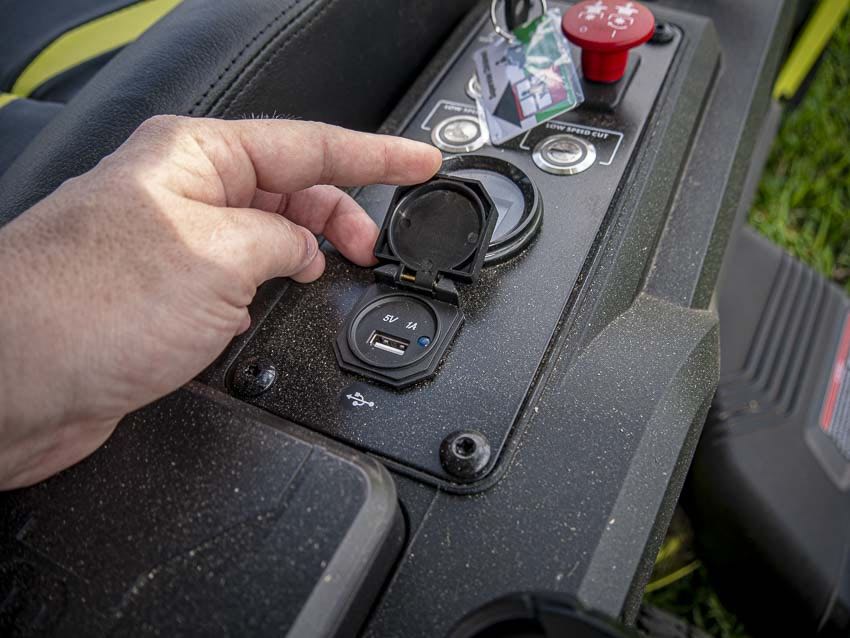 The ZT480ex has enclosed storage compartments, a cup holder, USB phone charging capabilities, and LED headlights. Personally, I donโt often charge my phone while mowing at night, but that might come down more to having a lack of opportunity. With this mower, I now have the option to give it a shot. Plus, being able to take a couple of cold ones (Editorโs Note: root beers) with me while I work on the lawn makes for a much more adventurous and enjoyable mowing experience.