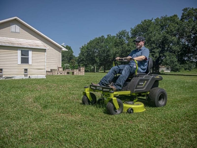 Such was the case with the Ryobi Zero Turn Mower as well. We had the deck height set at a moderate 2.5โณ, ย but as the grass got thicker, you could hear the mower blades struggle, start to rattle around some, and quit. Of course, they would start right back up as soon as the grass thinned out again, but then we found weโd have to circle back to mow down the choppy-looking mohawk left in the lawn where the blade motors quit. You might experience this with damp grass as well.
