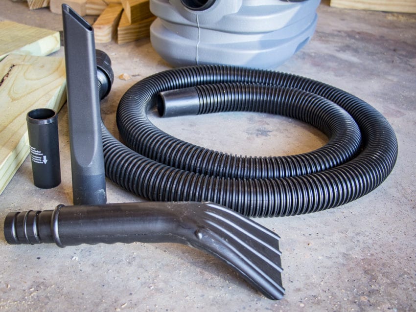 Mobility:ย This model doesnโt include wheels. Shop-Vac designed this particular model to tackle small areas, one at a time. Its relatively lightweight and compact size make it easy to move to the workbench or car โ just donโt plan on cleaning the entire shop with it. It can also work as a tool-specific dust collector for you miter saw or table saw (you may need a hose adapter to make it fit).